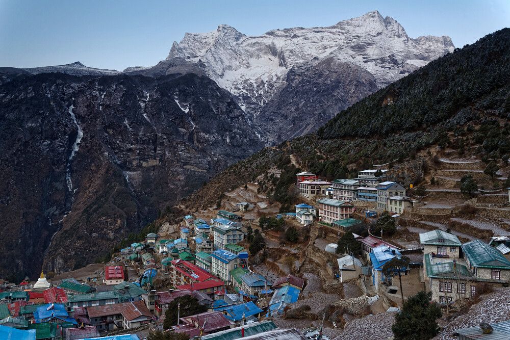 Zunächst folgen Sie dem tief eingeschnittenen Tal des Dudh Koshi. Bei Monjo betreten Sie den Sagarmatha-Nationalpark (UNESCO-Weltnaturerbe). Kurz darauf wird der Fluss auf einigen Hängebrücken sowie der spektakulären Hillary Bridge überquert. Die letzten 2-3 Stunden geht es steil hinauf nach Namche Bazar (3440 m). Während des Anstiegs kann man mit etwas Glück bereits den Mount Everest sehen. Namche Bazar ist der bedeutendste Marktplatz des gesamten zentralen Himalaya. Sie haben Zeit für einen Bummel durch den Ort oder für einen Abendspaziergang zur besseren Akklimatisation. Übernachtung in einer Lodge. (Gehzeit ca. 6h, 1075 m?, 245 m?).